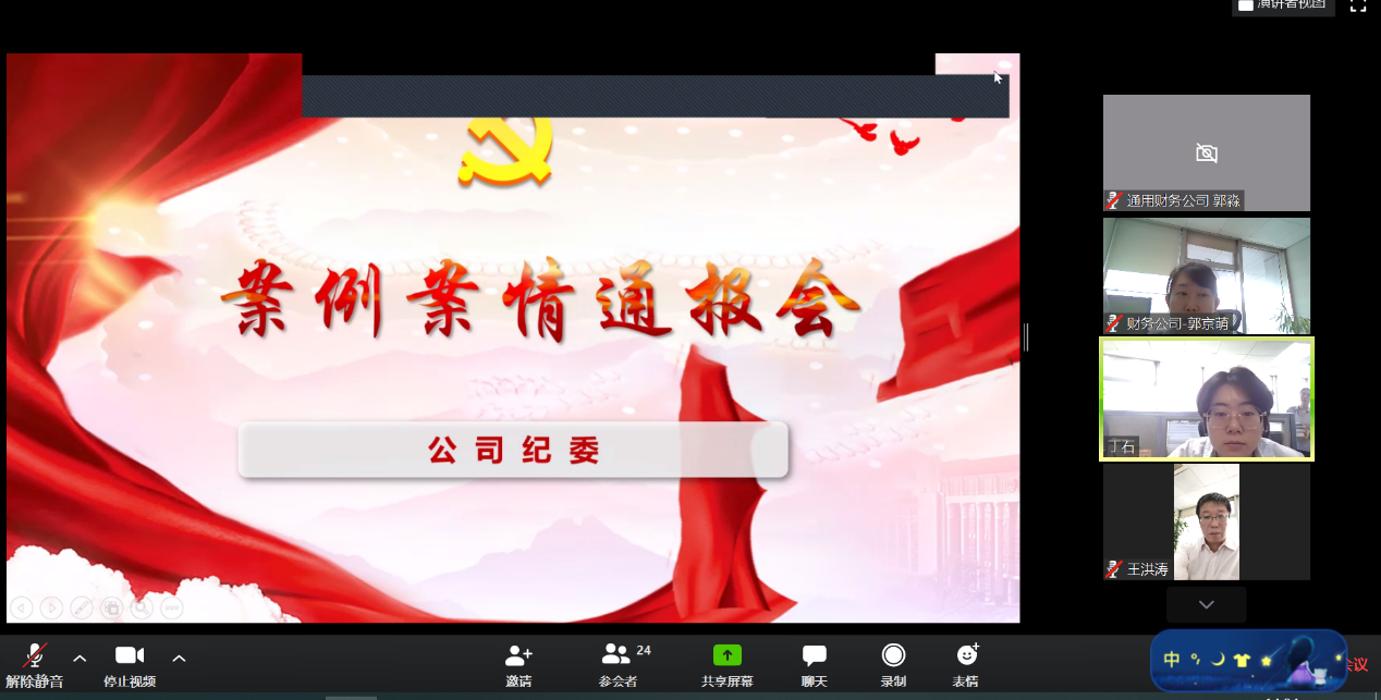 9月28日,财务公司纪委以视频会的形式组织召开第三季度案例案情通报会。会议由纪委书记王洪涛主持,公司领导班子成员及全体员工参加会议。