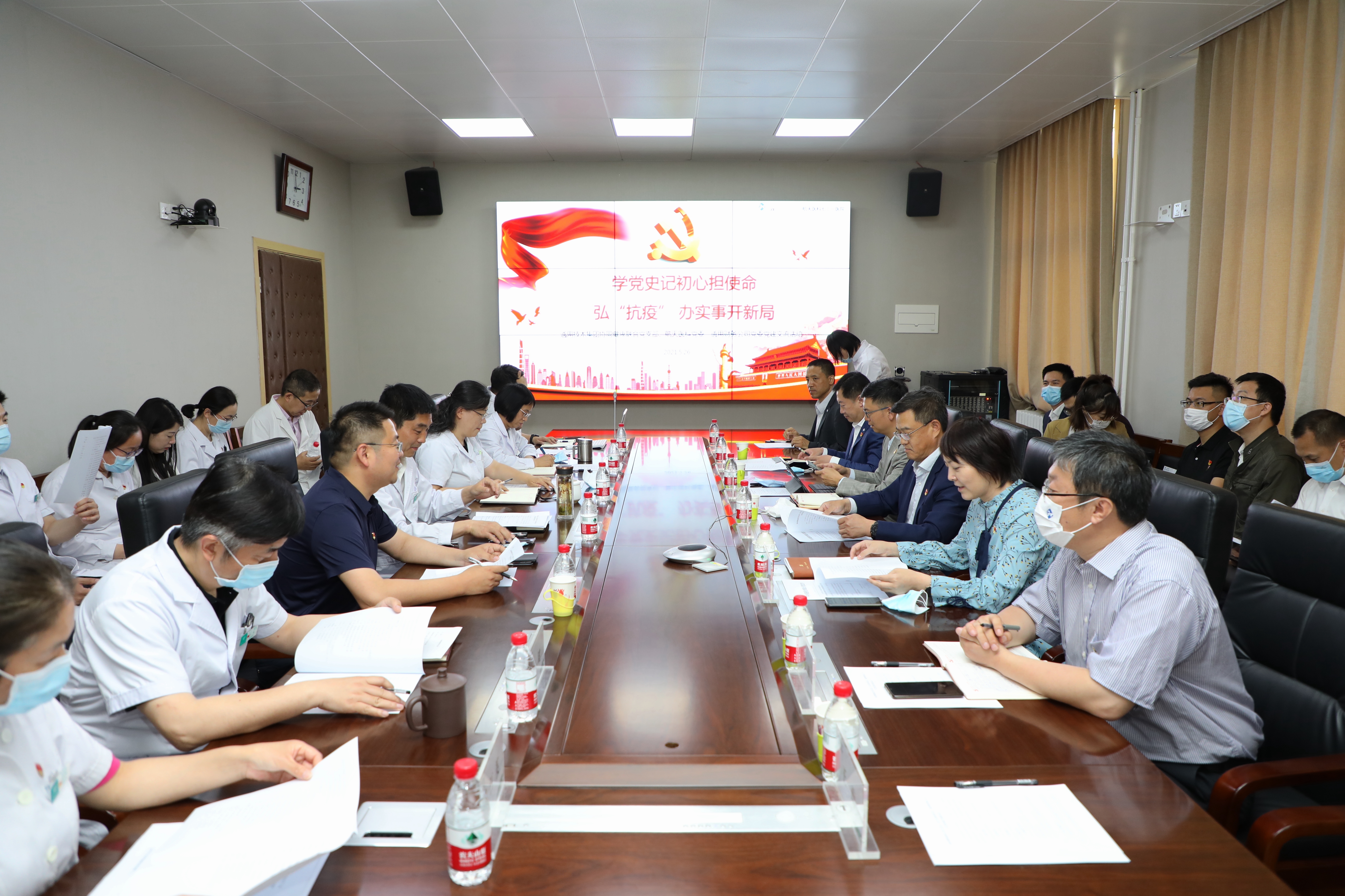 为开展好党史学习教育,进一步深入学习弘扬伟大“抗疫精神”,5月26日下午,通用财务公司党委委员、副总经理徐艺,纪委书记、副总经理王洪涛带队与集团协同健康联合党支部、航天医科党委在731医院开展了主题为“学党史记初心担使命、弘“抗疫”办实事开新局”党建共建活动,推动党建和业务交流,专题研讨合作推进集团医疗健康产业高质量发展。集团健康事业部副总经理侯文玲、协同发展部副总经理王昆,航天医科副总经理、731医院院长彭望书,731医院党委书记杨姝雅等共计30余名党员参加了活动。