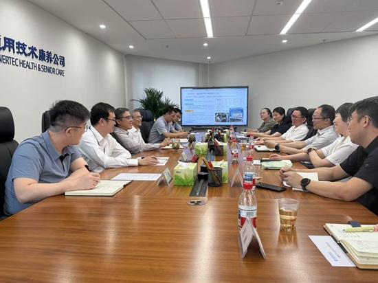 双方首先参观了智慧康养展厅,康养公司详细介绍了公司的发展沿革及产业布局等情况。参观结束后,双方围绕康养公司发展规划和养老金融等方面进行交流座谈,并就重点养老项目情况进行详细探讨。双方一致同意将在健康养老事业发展上进一步加强合作,积极做好中央金融工作会议提出的“五篇大文章”中的养老金融,为全方位推进集团健康养老产业高质量发展提供强力支持。