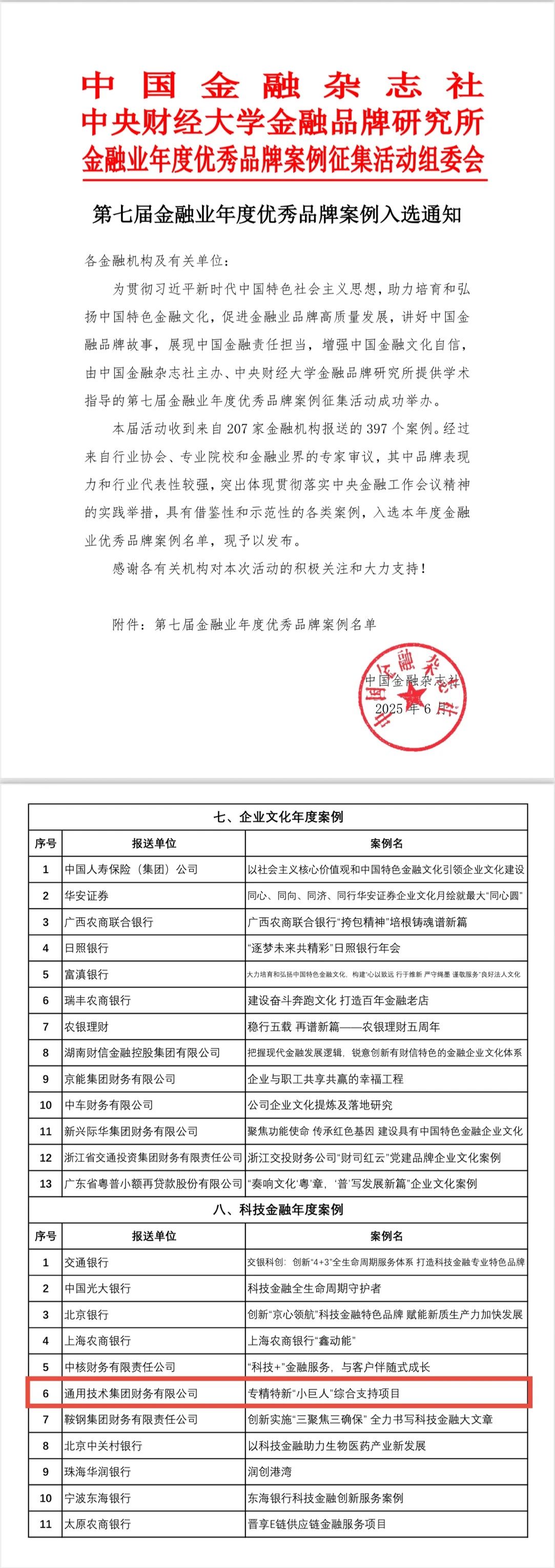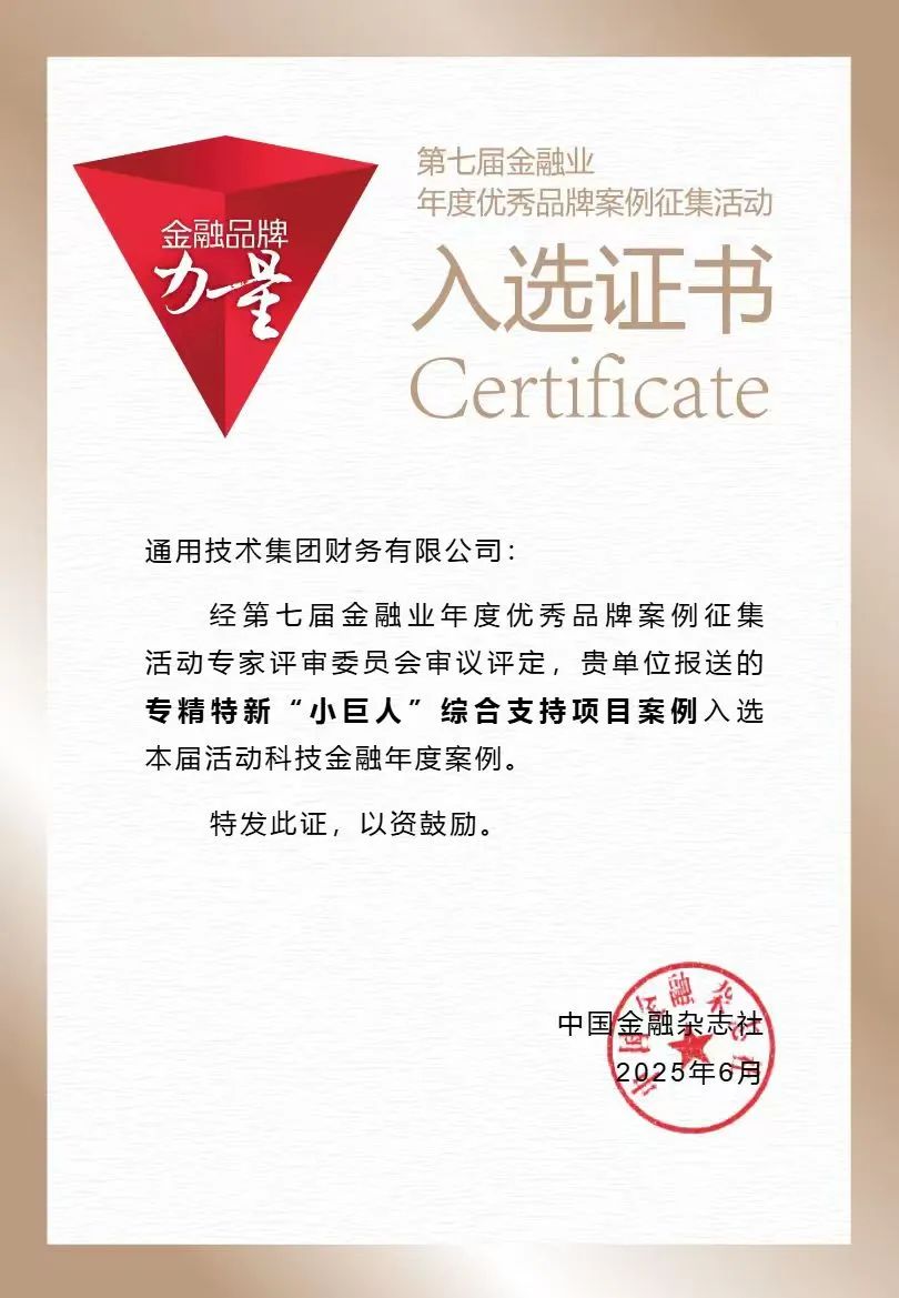 通用技术财务公司专精特新“小巨人”财务顾问项目入选第七届金融业年度优秀品牌案例