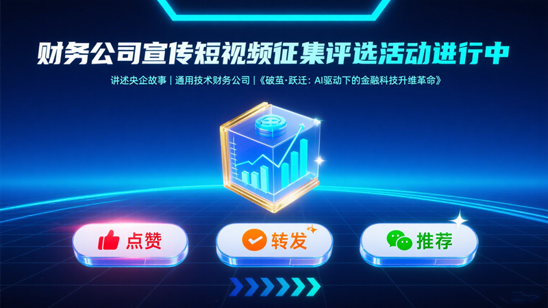 目前,中国财务公司协会正以视频展播的形式,开展“财务公司宣传短视频”征集评选活动,期待您点击下图观看视频《讲述央企故事 | 通用技术财务公司 | 破茧·跃迁:AI驱动下的金融科技升维革命》,并在视频展播页面点赞、转发、推荐!