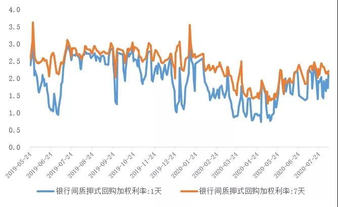 本周国内资金面呈现先松后紧态势,未来一段时间流动性可能仍会趋紧。本周央行公开市场操作继续,8月7日,100亿7天逆回购。受国际形势影响,资金面整体成交量下行,加之本周央行资金净回笼,资金面均衡偏紧。