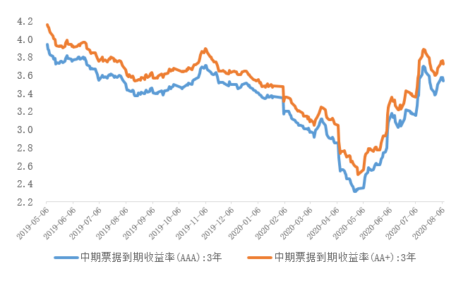 近一年中票(AAA3Y和AA+3Y)收益率走势