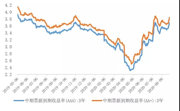近一年中票(AAA3Y和AA+3Y)收益率走势