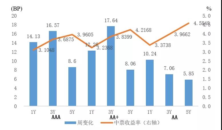 中债中短期票据AAA曲线5Y收益率上行9.38BP至3.9667%,中债企业债AAA曲线5Y收益率上行9.38BP至3.9668%,城投债AAA曲线5Y收益率上行13.08BP至4.0109%。