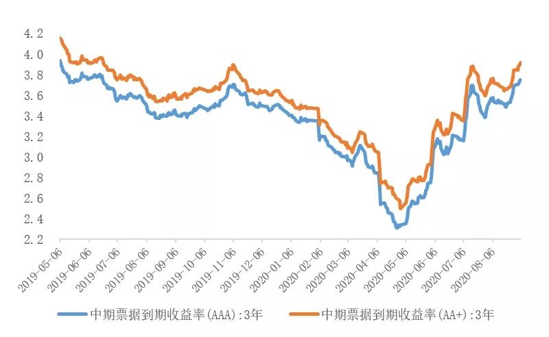 近一年中票(AAA 3Y和 AA+ 3Y)收益率走势