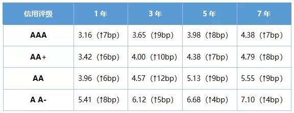 中债中短期票据AAA曲线5Y收益率上行1.56BP至3.9823%,中债企业债AAA曲线5Y收益率上行1.54BP至3.9822%,城投债AAA曲线5Y收益率上行5.07BP至4.0616%。