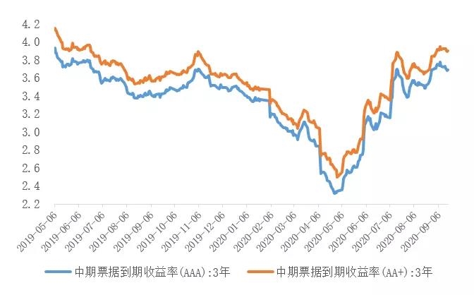 近一年中票(AAA3Y和AA+3Y)收益率走势
