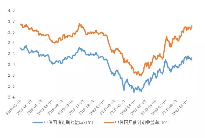 近一年国债和国开债(10Y)收益率走势