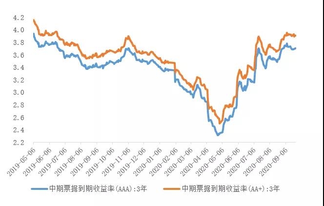 近一年中票(AAA3Y和AA+3Y)收益率走势