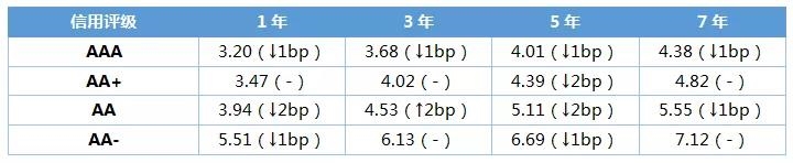 中债中短期票据AAA曲线5Y收益率下行0.57BP至3.961%,中债企业债AAA曲线5Y收益率下行0.58BP至3.9606%,城投债AAA曲线5Y收益率下行2.54BP至3.9983%。