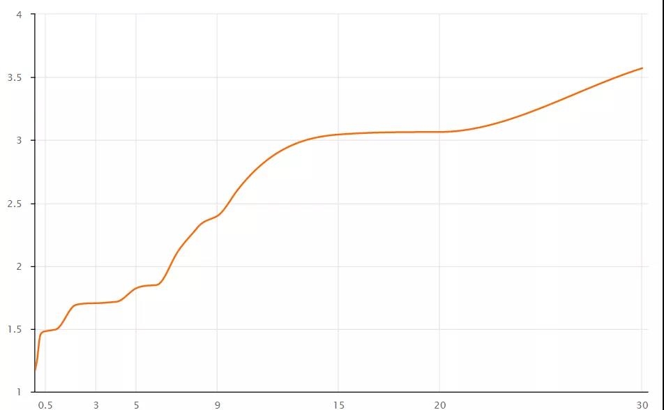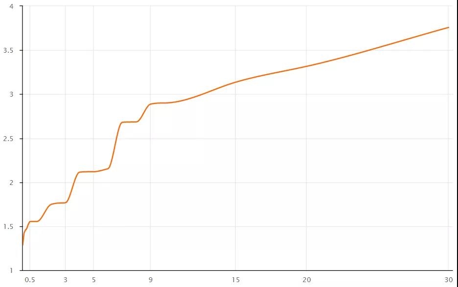 美国国债收益率曲线(%)