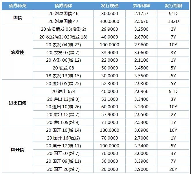 本周国债和国开债发行情况