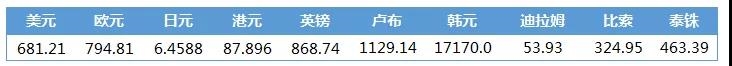 人民币汇率中间价列表(2020-9-25)