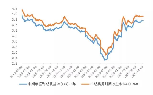 近一年中票(AAA3Y和AA+3Y)收益率走势
