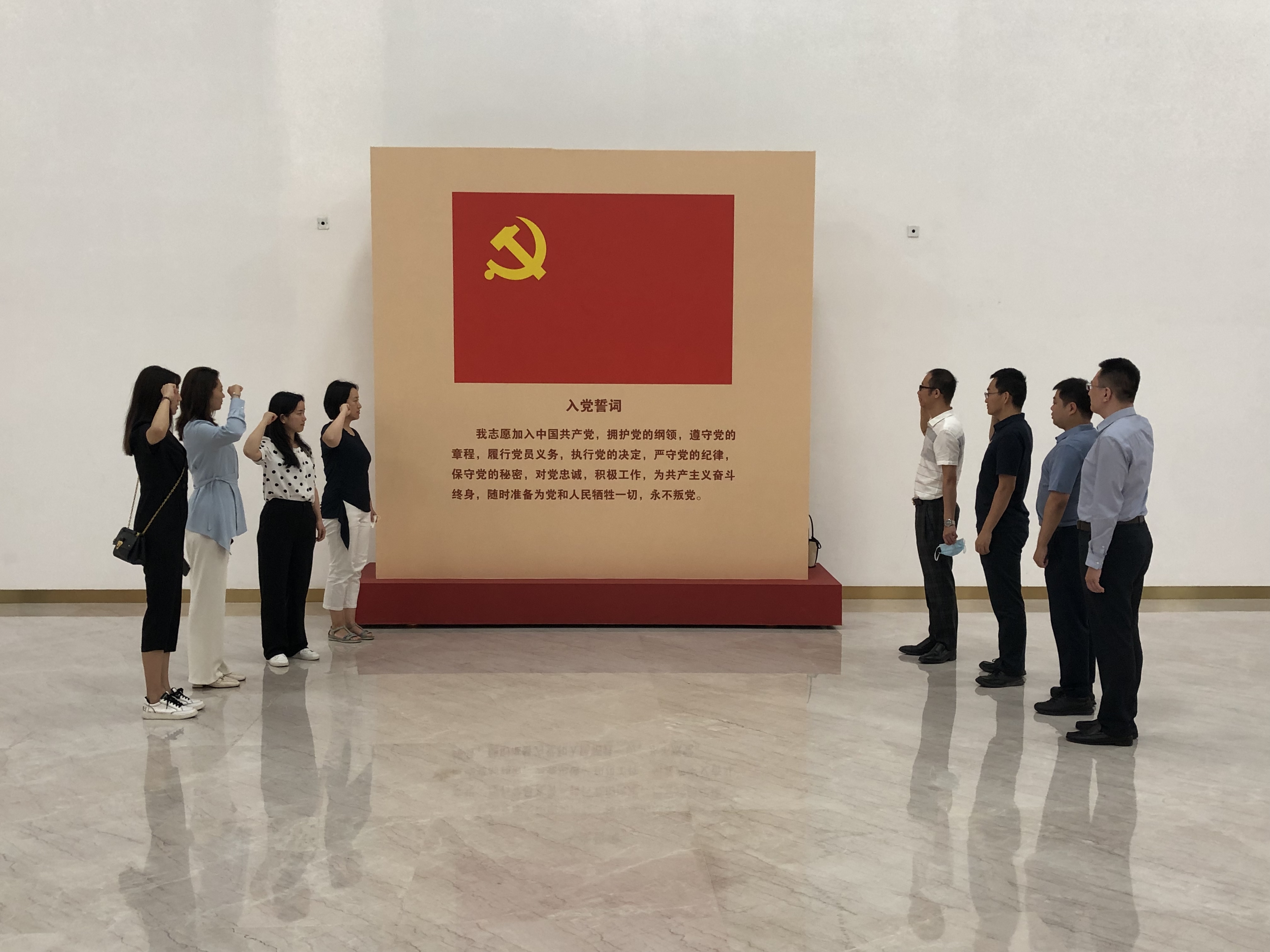 参观结束后,全体党员来到宣誓大厅,面向鲜红党旗重温入党誓词;同时按照活动安排,支部组织党员在活动现场重点围绕贯彻上级关于稳增长的决策部署,围绕本单位部门年度目标任务,进一步组织党员学习了集团党组《大干一百天 打赢三季度 以实际行动迎接党的二十大胜利召开——致集团广大党员的一封信》,围绕“公司发展需要什么”“发展的难点痛点在哪里”“岗位建功我能做什么”三个问题开展了“践行倡议当先锋”讨论,并一起温习了集团企业文化发布会精神,合唱了集团司歌。